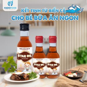 Nước mắm Star Oil là dòng nước mắm thuần khiết có chứa 18 acid amin tự nhiên giúp bé ăn ngon hơn, hấp thụ tốt hơn và giấc ngủ sâu hơn.